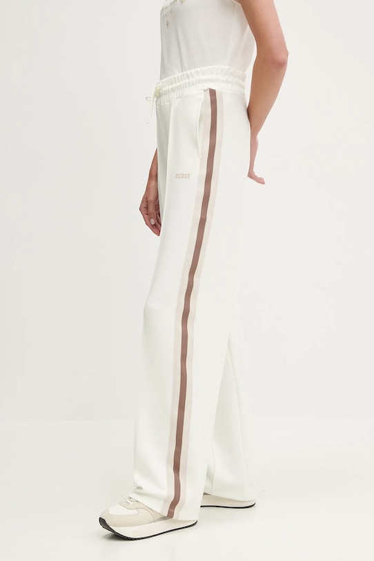 Спортивные брюки из коллекции Guess из плотной, слегка эластичной ткани. - Изделие содержит переработанные волокнистые материалы. - Свободный крой, обеспечивающий полную свободу движений. - Эластичный пояс со шнурками. - Два боковых накладных кармана. - Ширина талии: 37 см. - Ширина бедер: 49 см. - Высота талии: 31 см. - Ширина штанины внизу: 24 см. - Ширина штанины: 29 см. - Длина по внутреннему шву: 82 см. - Размеры указаны для размера: S.
