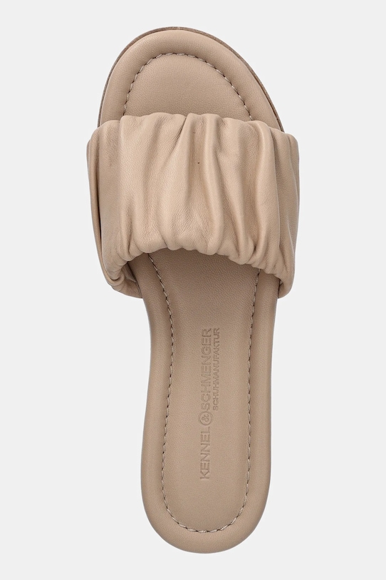 Эти шлёпанцы Kennel & Schmenger изготовлены из натуральной кожи. Верх из непористого материала легко чистится влажной тканью. - Натуральная кожа, используемая в изделии, поступает с сертифицированных кожевенных заводов и получена способом, обеспечивающим минимальное воздействие на окружающую среду. - Модель с кожаной внутренней частью, комфортной для стопы, предотвращающей натирание, потертости и появление неприятного запаха. - Модель на плоской подошве. - Кожаная подошва.
