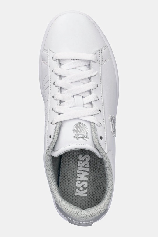 Эти кроссовки K-Swiss изготовлены из комбинации кожи с покрытием и синтетического материала. Эти лёгкие и удобные кроссовки идеально подходят для повседневной носки. - Зажатый нос. - Усиленный задник с мягким наполнителем защищает пятку от истирания. - Текстильная внутренняя часть комфортна для ног и облегчает содержание обуви в чистоте. - Классическая шнуровка позволяет индивидуально подогнать обувь по ноге. - Резиновая подошва прочная и устойчивая к повреждениям.