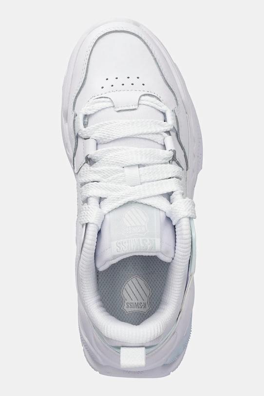 Эти кроссовки K-Swiss изготовлены из комбинации кожи с покрытием и синтетического материала. Эти лёгкие и удобные кроссовки идеально подходят для повседневной носки. - Зажатый нос. - Усиленный задник с мягким наполнителем защищает пятку от истирания. - Текстильная внутренняя часть комфортна для ног и облегчает содержание обуви в чистоте. - Классическая шнуровка позволяет индивидуально подогнать обувь по ноге. - Резиновая подошва прочная и устойчивая к повреждениям.