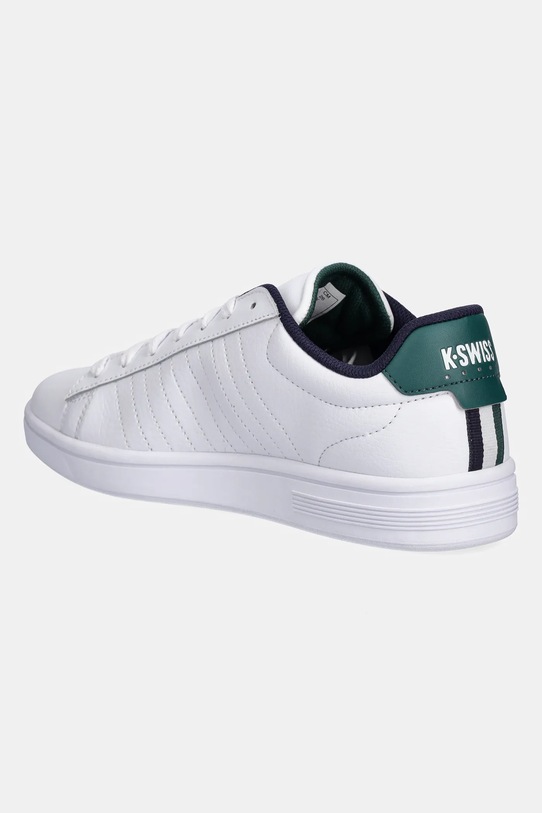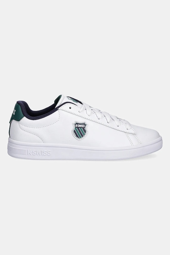 Эти кроссовки K-Swiss изготовлены из комбинации кожи с покрытием и синтетического материала. Эти лёгкие и удобные кроссовки идеально подходят для повседневной носки. - Зажатый нос. - Усиленный задник с мягким наполнителем защищает пятку от истирания. - Текстильная внутренняя часть комфортна для ног и облегчает содержание обуви в чистоте. - Классическая шнуровка позволяет индивидуально подогнать обувь по ноге. - Резиновая подошва прочная и устойчивая к повреждениям.