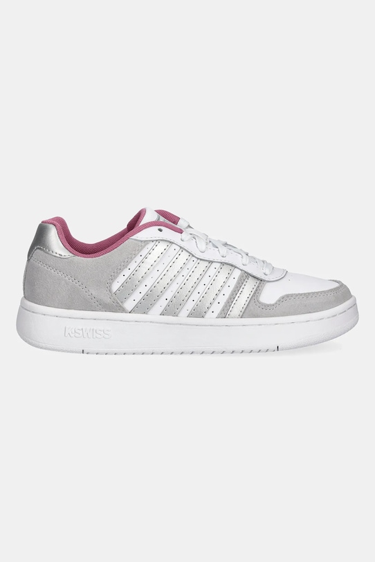 Эти кроссовки K-Swiss изготовлены из комбинации кожи с покрытием и синтетического материала. Эти лёгкие и удобные кроссовки идеально подходят для повседневной носки. - Зажатый нос. - Усиленный задник с мягким наполнителем защищает пятку от истирания. - Текстильная внутренняя часть комфортна для ног и облегчает содержание обуви в чистоте. - Классическая шнуровка позволяет индивидуально подогнать обувь по ноге. - Резиновая подошва прочная и устойчивая к повреждениям.
