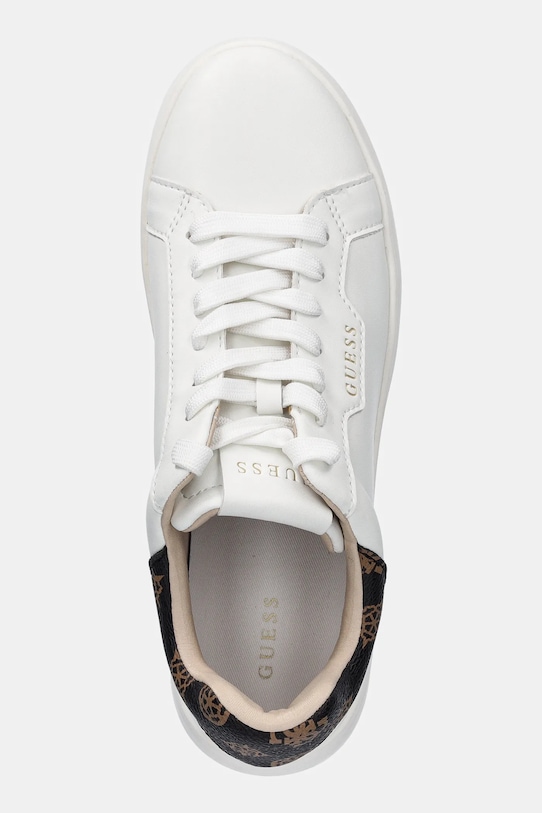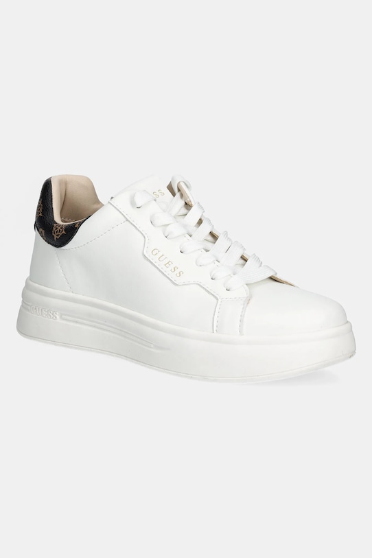 Кроссовки из коллекции Guess. Верх из комбинации натуральной и искусственной кожи не имеет пор и легко чистится влажной тканью. - Круглый, сильно заостренный нос. - Усиленный задник обеспечивает отличную поддержку лодыжки и пятки. - Плоские шнурки устраняют давление на подъем стопы, обеспечивая хорошую посадку и комфорт. - Резиновая подошва прочная и устойчивая к повреждениям. - Текстильная внутренняя часть комфортна для ног и облегчает содержание обуви в чистоте.