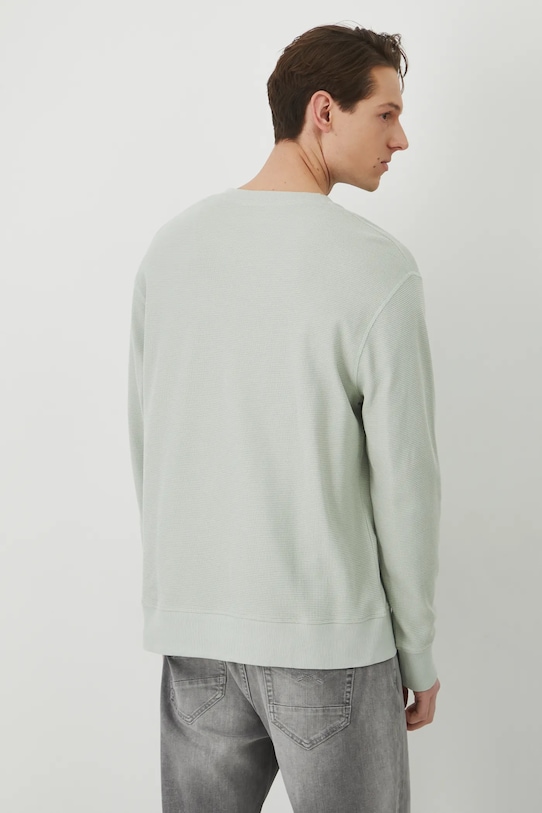Лонгслив из коллекции Medicine. Изготовлен из фактурного трикотажа. - Материал с сертификатом OEKO-TEX Standard 100 гарантирует, что текстильные изделия, на которых он нанесен, не содержат вредных и потенциально опасных для человека и окружающей среды веществ. - Обычная посадка. - Длинный рукав. - Круглый вырез. - Отделка ребер. - Материал с текстурой. - Длина рукава: 64,5 см. - Длина: 74 см. - Ширина груди: 58 см. - Размеры указаны для размера: L.