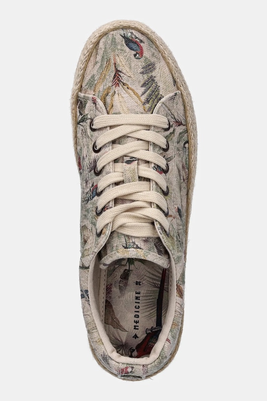 Кроссовки из коллекции Medicine. Изготовлены из текстильного материала. - Круглый нос. - Усиленный задник. - Уютная хлопковая подкладка. - Подошва изготовлена из комбинации резины и джута. - Удобная поролоновая вставка из хлопчатобумажной ткани. - Модель на шнуровке. - Декоративная деталь. - Материал с ноткой льна. - Узорчатый материал. - Узор с растительными и животными мотивами. - Длина вставки: 24,5 см. - Размеры указаны для размера: 38.