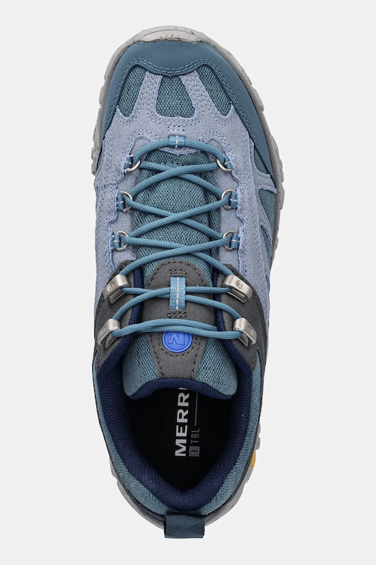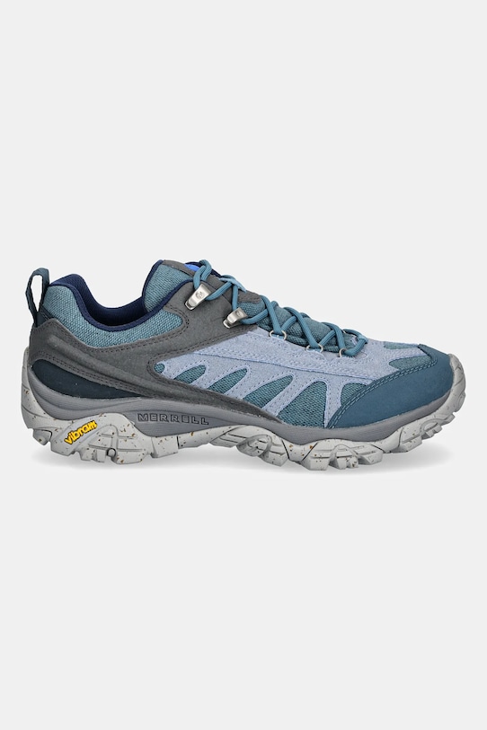 Кроссовки из коллекции Merrell 1TRL, выполненные из комбинации синтетического материала и замши. - Vibram — современная и высокопрочная подошва. Она отличается противоскользящим эффектом и гарантирует максимальный комфорт и безопасность при использовании. - Широкий носок предотвращает давление на пальцы ног. - Усиленный задник с мягким наполнителем защищает пятку от истирания. - Металлические крючки облегчают шнуровку. - Петля сзади облегчает надевание и снятие обуви.
