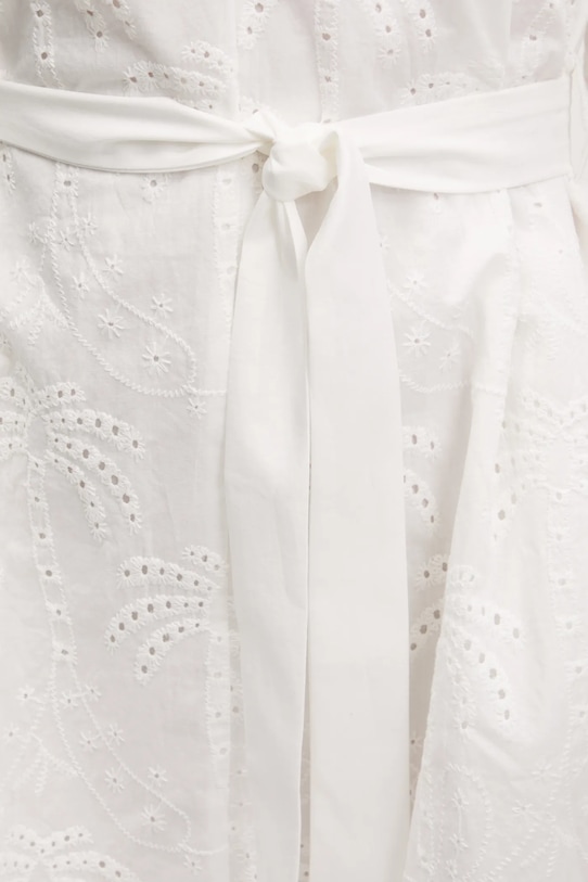 Платье из коллекции Desigual, выполненное из тонкой, неэластичной ткани. Модель выполнена из дышащего хлопкового материала. - Расклешенный крой. - Декоративный, заостренный вырез. - Застежка на короткие пуговицы обеспечивает эффективную вентиляцию и легкость надевания и снимания. - Рукава отделаны резинкой. - Два боковых накладных кармана. - Текстильный ремешок в комплекте. - Дополнительный слой материала в виде подкладки. - Модель с декоративной вышивкой.