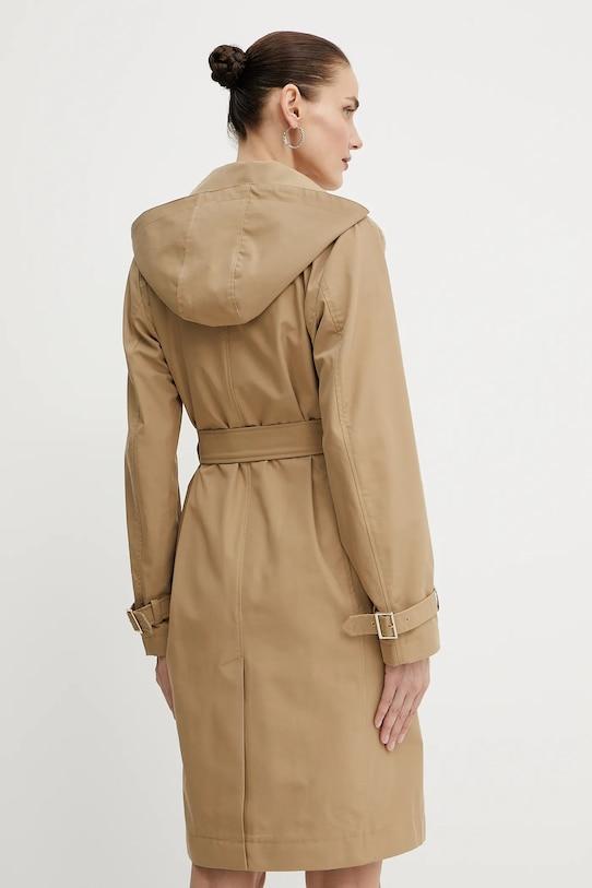 Тренч из коллекции Morgan. Модель без подкладки выполнена из гладкой ткани. - Эта модель частично изготовлена из переработанного полиэстера. - Двубортный пиджак с застежкой на пуговицы. - Два боковых накладных кармана. - Съемный капюшон обеспечивает дополнительное тепло и защиту при необходимости. - Разрез сзади. - Неутепленная модель без подкладки. - Пояс на талии. - Длина: 95 см. - Ширина под мышками: 48 см. - Размеры указаны для размера: 36.