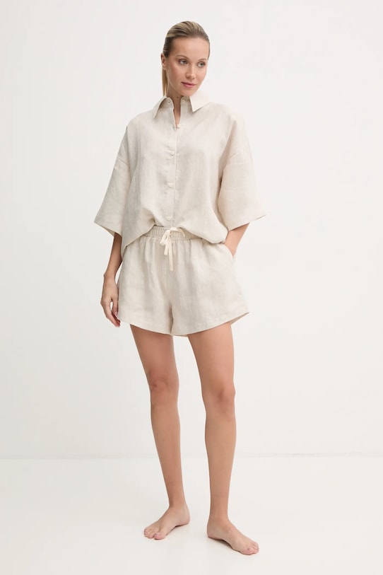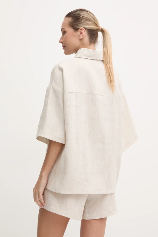 Эта рубашка из коллекции JOYINME выполнена из гладкой ткани. Модель выполнена из дышащего льняного материала. - Свободный крой, обеспечивающий полную свободу движений. - Модель с воротником. - Короткий рукав. - Крой рукава со спущенной линией плеча не ограничивает подвижность. - Удобная застежка на кнопки позволяет легко надевать и снимать. - Тонкая, неэластичная ткань. - Длина: 68 см. - Ширина под мышками: 60 см. - Размеры указаны для размера: 34/36.