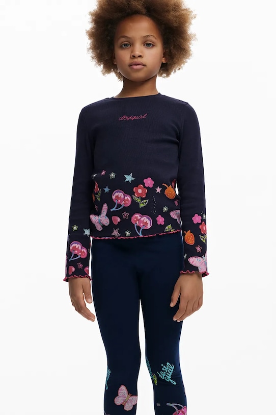 Детские леггинсы из коллекции Desigual из тонкой, эластичной ткани. Материал мягкий и приятный на ощупь. – Инициатива «Лучший хлопок». Изделия с этой маркировкой содержат не менее 50% хлопка от розничного продавца или бренда, участвующего в инициативе «Лучший хлопок» и инвестирующего в развитие BCI. - Приталенный крой, подчеркивающий силуэт. - Приталенная ножка. - Высокая талия. - Эластичный пояс предотвращает скольжение во время движения. - Модель с принтом.
