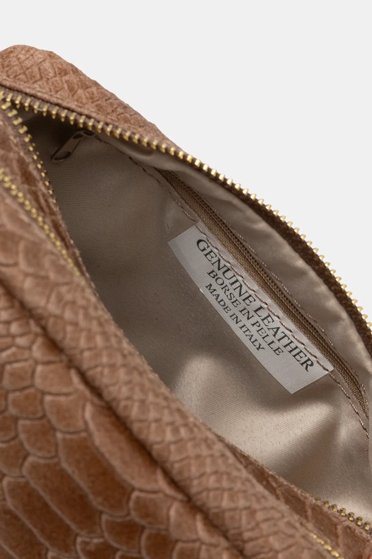 Небольшая сумочка из коллекции Answear LAB. Модель на молнии из натуральной кожи. - Двухкамерная модель. - Застежка-молния. - Внутренний карман на молнии. - Модель на подкладке. - Не подходит для формата А4. - Съемный регулируемый ремешок. - Входящий в комплект тканевый чехол защищает изделие от пыли. - Глубина: 7,5 см. - Высота: 14 см. - Ширина у основания: 20 см. - Минимальная длина ремешка: 78 см. - Максимальная длина ремня: 144 см.