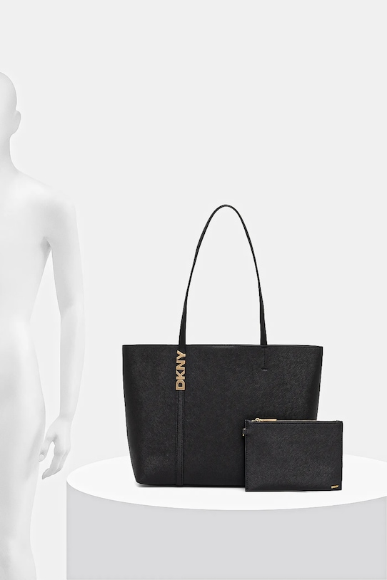 Большая сумка-шоппер из коллекции Dkny. Модель на молнии, выполнена из кожи с покрытием. - Магнитная застежка. - Модель без подкладки. - Внутренний накладной карман для удобного и безопасного хранения мелких предметов. - Длинные ручки для удобной переноски в руке или на плече. - Вмещает формат А4. - Входящий в комплект тканевый чехол защищает изделие от пыли. - Длина ручки: 62 см. - Глубина: 14 см. - Высота: 28 см. - Ширина у основания: 34 см.