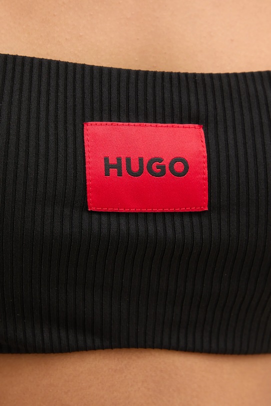 Плавательный бюстгальтер из коллекции HUGO. Изготовлен из комфортного материала. - Данное изделие частично изготовлено из переработанного полиэстера. - Съемные подушечки слегка придают жесткость, стабилизируют бюст и обеспечивают дополнительную защиту. - Модель с боковыми косточками. - Дополнительный слой материала в виде подкладки увеличивает покрытие и обеспечивает дополнительный комфорт во время активности. - Застежка-кнопка. - Регулируемые, съемные ремни.