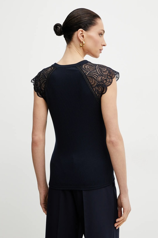Эта футболка из коллекции Morgan выполнена из тонкой эластичной ткани. Содержание полиэстера делает материал менее мнущимся. - Эта модель частично изготовлена из переработанного полиэстера. - Изготовлено из экологически чистого материала LENZING ECOVERO. LENZING ECOVERO производится из органической целлюлозы и древесной массы, используя на 50% меньше воды, чем популярная вискоза. - Простой дизайн, не стесняющий движений. - Острый ребристый вырез. - Кружевные вставки.