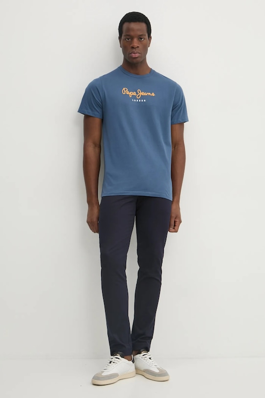 Лёгкая футболка из коллекции Pepe Jeans, изготовленная из высококачественной, экологичной ткани. Изготовлена из исключительно комфортного хлопка. - Модель из линейки Pepe Future, в которую входят изделия, изготовленные в ходе экологически устойчивого производства. - Обычная посадка. - Круглый ребристый вырез. - Графический логотип бренда спереди. - Тонкий, эластичный трикотаж. - Длина: 69 см. - Ширина под мышками: 55 см. - Размеры указаны для размера: M.