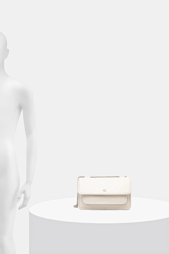 Небольшая сумочка из коллекции Calvin Klein Jeans. Модель на молнии, выполнена из комбинации текстиля и искусственной кожи. - Двухкамерная модель. - Клапан застегивается на кнопку. - Имеет два внутренних кармана: один прорезной, другой на молнии. - Карман на магнитной застежке на задней стороне позволяет безопасно хранить телефон или другие мелкие предметы. - Модель с декоративной цепочкой. - Глубина: 9,5 см. - Высота: 16 см. - Ширина у основания: 27 см.