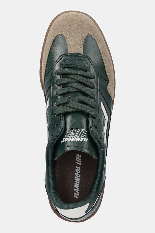 Кроссовки из коллекции Flamingos, изготовленные из экокожи, имеют прочную и устойчивую к истиранию резиновую подошву. - Верх из экокожи на основе хлопкового полотна, покрытого кукурузным напылением. - Круглый, мягкий нос. - Усиленный задник обеспечивает отличную поддержку лодыжки и пятки. - Плоские шнурки устраняют давление на подъем стопы, обеспечивая хорошую посадку и комфорт. - Текстильная внутренняя часть комфортна для ног и облегчает содержание обуви в чистоте.