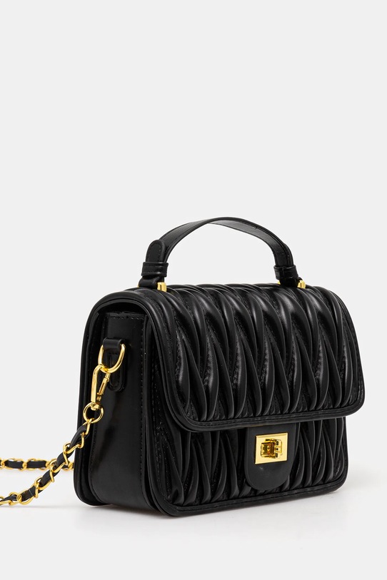 Небольшая сумочка из коллекции Answear.LAB. Застегивается на молнию, выполнена из экокожи. - Поворотная застежка. - Модель на подкладке. - Имеет два внутренних кармана: один прорезной, другой на молнии. - Сумка для ношения в руке или на плече. - Имеет ручку и съемный нерегулируемый ремень. - Не подходит для формата А4. - Входящий в комплект тканевый чехол защищает изделие от пыли. - Глубина: 7 см. - Высота: 14 см. - Ширина у основания: 21 см.