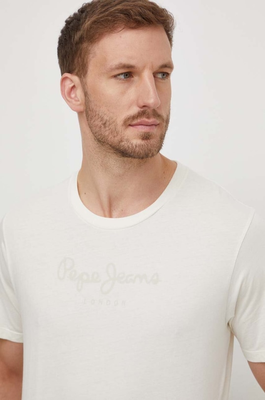 Лёгкая футболка из коллекции Pepe Jeans, изготовленная из высококачественной, экологичной ткани. Изготовлена из исключительно комфортного хлопка. - Модель из линейки Pepe Future, в которую входят изделия, изготовленные в ходе экологически устойчивого производства. - Обычная посадка. - Круглый ребристый вырез. - Графический логотип бренда спереди. - Тонкий, эластичный трикотаж. - Длина: 69 см. - Ширина под мышками: 55 см. - Размеры указаны для размера: M.