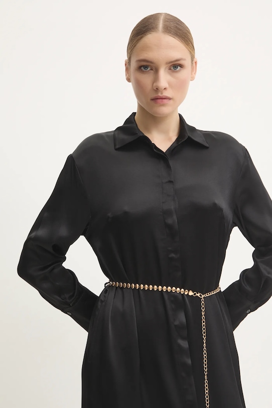 Платье из коллекции Answear.LAB, выполненное из гладкой ткани. Доступно эксклюзивно на Answear.com. - Простой дизайн, не стесняющий движений. - Модель поставляется с металлическим ремешком. - Застежка на пуговицы. - Манжеты на пуговицах. - Тонкая, неэластичная ткань. - Два боковых накладных кармана. - Длина рукава (от воротника): 75 см. - Ширина под мышками: 48 см. - Ширина талии: 50 см. - Длина: 137 см. - Размеры указаны для размера: S.