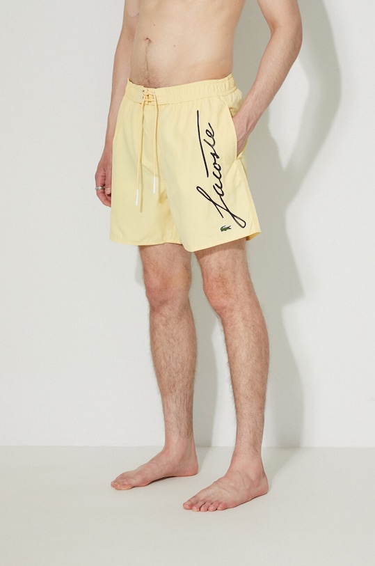 Эти плавки-шорты из коллекции Lacoste изготовлены из лёгкой ткани. Этот тонкий материал идеально подходит для тёплого времени года. - Данное изделие частично изготовлено из переработанного полиэстера. - Простой дизайн, не стесняющий движений. - Эластичный пояс предотвращает скольжение во время движения. - Регулировка ширины талии с помощью шнурков. - Накладные карманы. - Сетчатое внутреннее белье обеспечивает дополнительный комфорт во время занятий спортом.