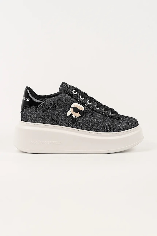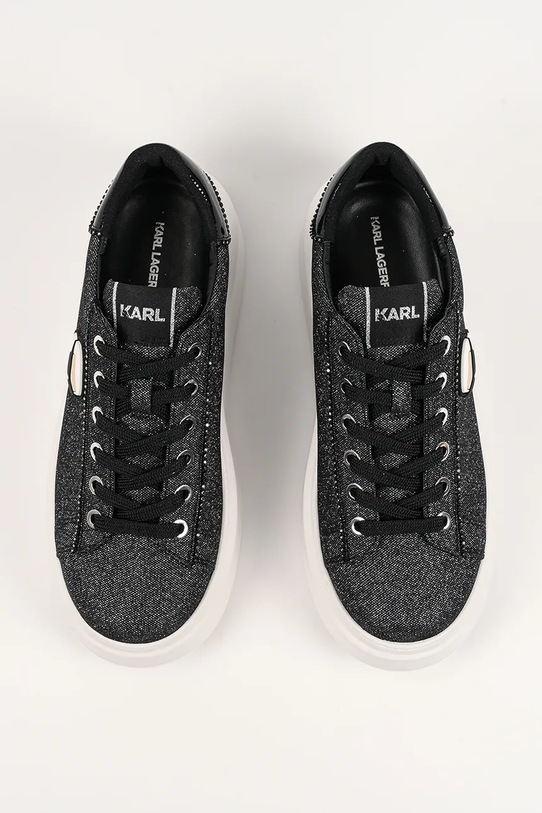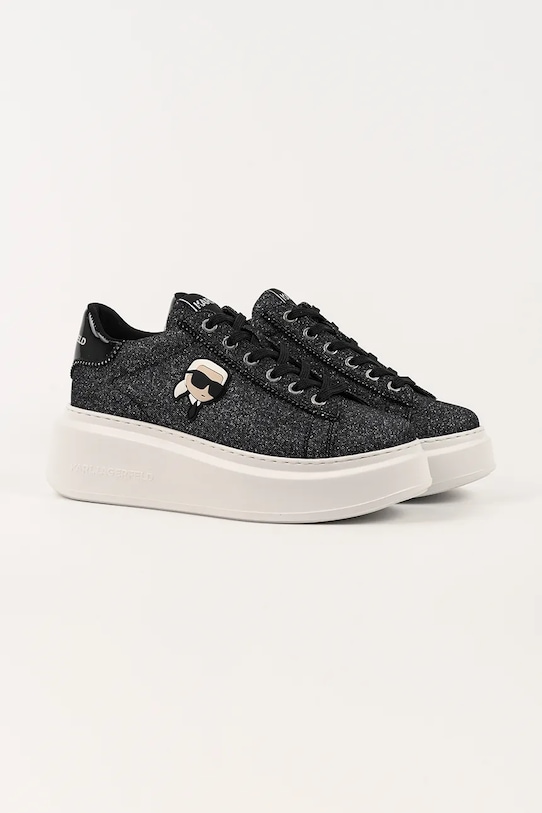 Кроссовки из коллекции Karl Lagerfeld. Модель выполнена из натуральной кожи с эффектным мерцающим эффектом. - Круглый, слегка утолщенный носок. - Жесткий задник стабилизирует пятку и удерживает ногу в обуви, не давая ей выскальзывать во время движения. - Плоские шнурки устраняют давление на подъем стопы, обеспечивая хорошую посадку и комфорт. - Съемная, легко моющаяся вставка. - Резиновая подошва прочная и устойчивая к повреждениям. - Платформенная модель.