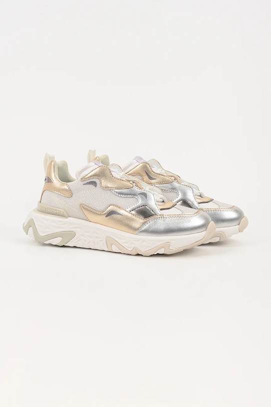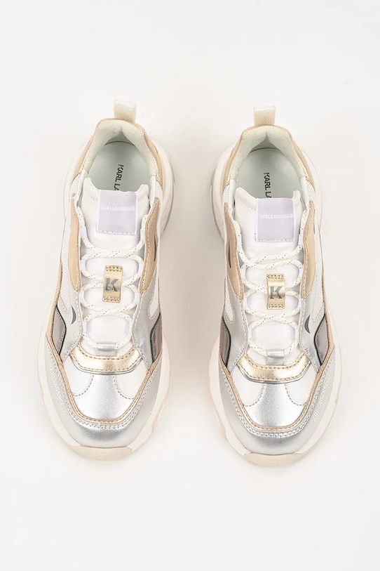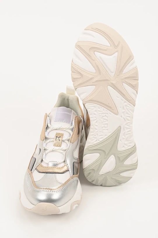 Кроссовки из коллекции Karl Lagerfeld. Изготовлены из комбинации натуральной кожи и текстиля, имеют слегка гибкую резиновую подошву, прочную и устойчивую к повреждениям. - Круглый, жёсткий носок. - Уютный салон. - Усиленный задник обеспечивает отличную поддержку лодыжки и пятки. - Классическая шнуровка позволяет индивидуально подогнать обувь по ноге. - Петля сзади облегчает надевание и снятие обуви. - Резиновая подошва прочная и устойчивая к повреждениям.