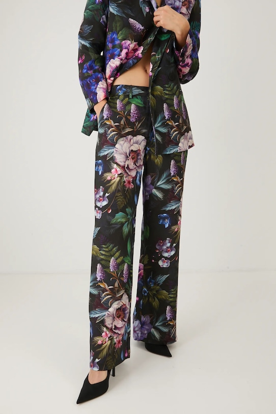 Брюки из коллекции «Медицина». Изготовлены из узорчатой ткани. - Широкий фасон штанины. - Модель со стандартной талией, застежкой на пуговицы и молнию. - Накладные карманы. - Широкие штанины. - Узорчатая ткань. - Цветочный узор. - Модель изготовлена из лиоцелла. - Ширина талии: 39 см. - Ширина бедер: 51 см. - Высота талии: 27,7 см. - Ширина штанины внизу: 29,6 см. - Длина по внутреннему шву: 81 см. - Размеры указаны для размера: M.