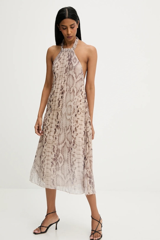 Это платье из коллекции Answear.LAB выполнено из тонкой, неэластичной ткани. Полиэстер обеспечивает лучшую устойчивость к сминанию. - Расклешенный крой. - Вырез халтер. - Модель с регулируемой шнуровкой. - Дополнительный слой материала в виде подкладки. - Плоские швы защищают кожу от ссадин и раздражения. - Расстегивающаяся модель. - Плиссированный материал. - Длина: 111 см. - Ширина под мышками: 37,5 см. - Размеры указаны для размера: S.