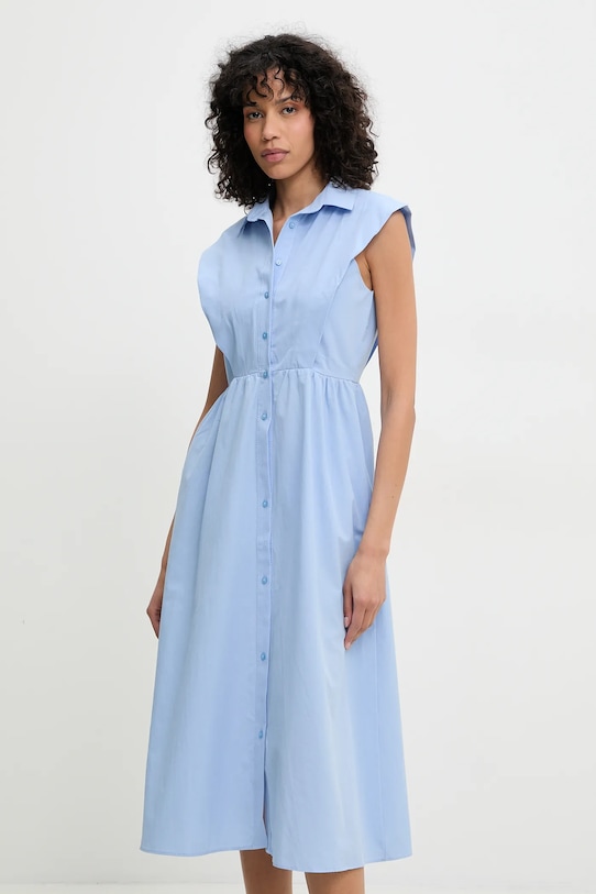 Это платье из коллекции Answear.LAB выполнено из тонкой, неэластичной ткани. Модель выполнена из дышащего материала с высоким содержанием хлопка. - Расклешенный крой. - Удобная застежка на кнопки позволяет легко надевать и снимать. - Модель с воротником. - В плечах вшиты подкладки. - Два боковых накладных кармана. - Модель без подкладки. - Длина: 123 см. - Ширина под мышками: 45 см. - Ширина талии: 38 см. - Размеры указаны для размера: S.