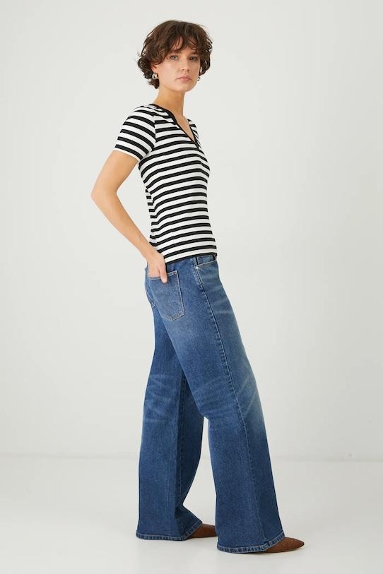 Футболка из коллекции «Медицина». Изготовлена из трикотажной ткани в рубчик. - Материал с сертификатом OEKO-TEX Standard 100 гарантирует, что текстильные изделия, на которых он нанесен, не содержат вредных и потенциально опасных для человека и окружающей среды веществ. - Приталенный крой. - Короткий рукав. - Острый вырез. - Трикотажное полотно в рубчик. - Полосатый рисунок. - Длина: 60 см. - Ширина груди: 39 см. - Размеры указаны для размера: S.