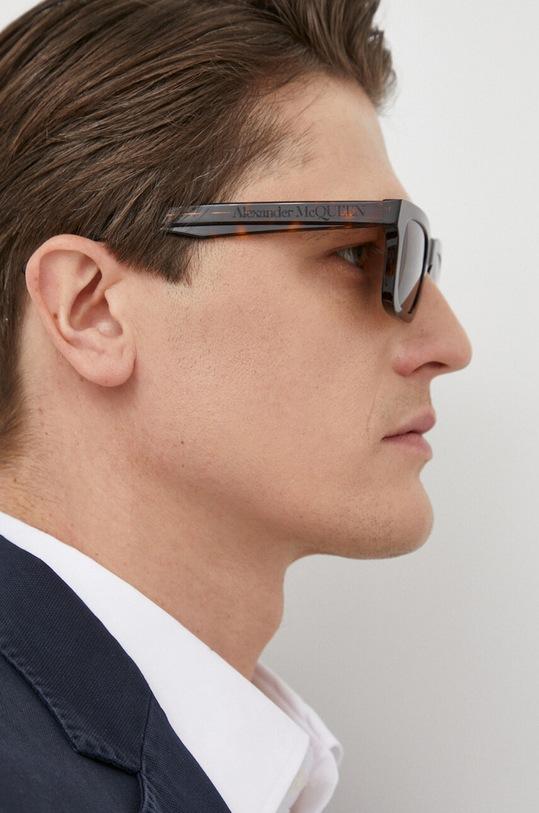 Солнцезащитные очки из коллекции Alexander McQueen. Эта модель с гладкими линзами и пластиковой оправой имеет защиту UV 400. Полученный вами футляр может отличаться от изображенного на фотографии. Футляры отправляются производителем случайным образом, поэтому выбрать конкретный футляр невозможно. - Форма оправы: прямоугольная. - Защита от ультрафиолета. - В комплект модели входят чехол и салфетка для протирки очков. - Ширина рамы: 150 мм. - Ширина линзы: 51 мм.