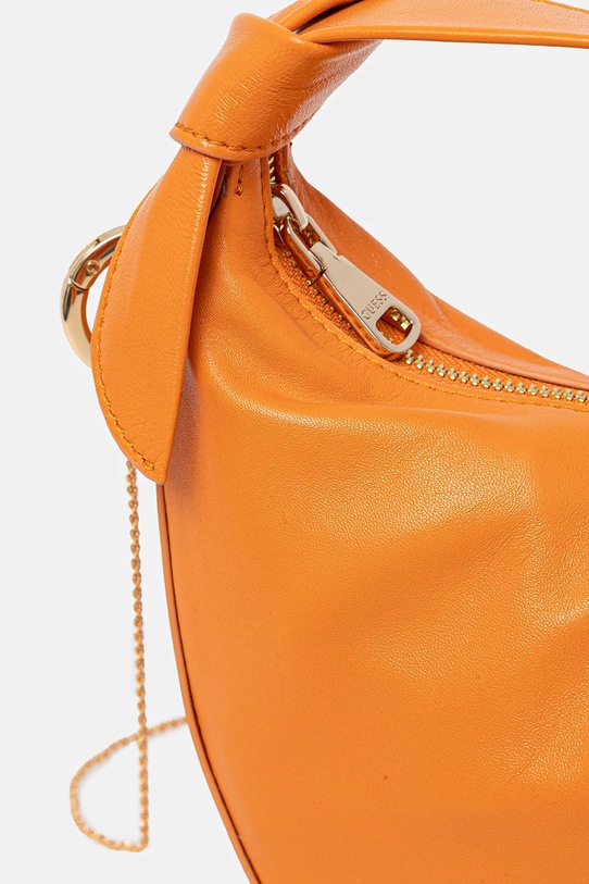 Сумка среднего размера из коллекции Guess. Модель на молнии, выполнена из натуральной кожи. - Сумка для ношения в руке или на плече. - Съемная цепь. - Внутренний накладной карман. - Усиленное дно сумки позволяет изделию долго сохранять форму. - Модель оснащена металлическими ножками, защищающими дно сумки. - Не подходит для формата А4. - В комплект входит чехол для переноски. - Ширина у основания: 19 см. - Высота: 16 см - Глубина: 8 см.