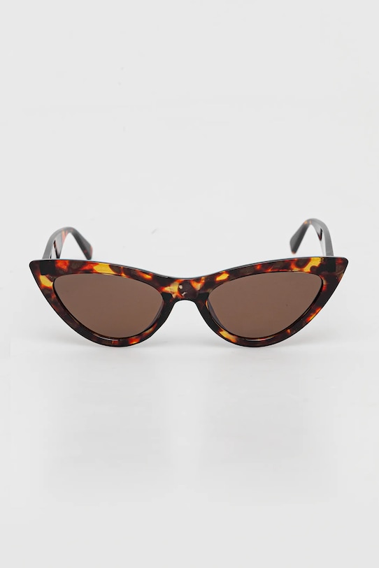 Солнцезащитные очки из коллекции Answear.LAB. Модель с гладкими линзами и пластиковой оправой. - Категория 3 (пропускает 8–18% света) — самая распространённая и универсальная категория затемняющих фильтров. Очки категории 3 идеально подходят для повседневного использования в солнечные дни и для отдыха в жарких странах. - УФ-фильтр защищает чувствительную радужную оболочку от UVA- и UVB-излучения. - В комплект модели входит чехол. - Форма оправы: кошачьи глаза.
