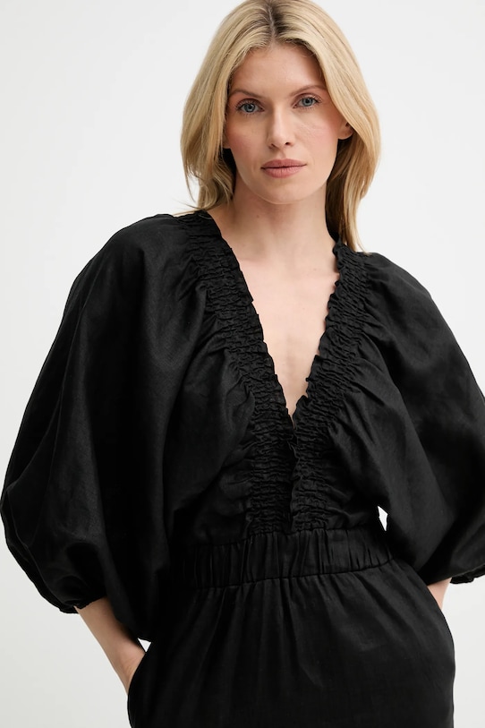 Это платье из коллекции Answear.LAB выполнено из тонкой, неэластичной ткани. Эта модель выполнена из исключительно комфортного и дышащего материала, идеально подходящего для теплого времени года. - Расклешенный крой. - Декоративный, заостренный вырез. - Короткие, пышные рукава. - Потайная застежка-молния. - Два боковых накладных кармана. - Модель без подкладки. - Длина: 122 см. - Ширина под мышками: 36 см. - Размеры указаны для размера: S.