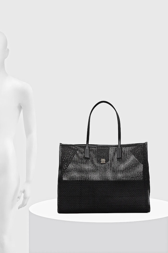 Большая сумка-тоут из коллекции Tommy Hilfiger. Сумка на молнии изготовлена из комбинации текстиля и синтетических материалов. - Длинные ручки для удобной переноски в руке или на плече. - Модель без подкладки. - Входящий в комплект тканевый чехол защищает изделие от пыли. - Внутренних карманов нет. - Вмещает формат А4. - Усиленное дно сумки позволяет изделию долго сохранять форму. - Ширина у основания: 43 см. - Высота: 33 см. - Глубина: 16 см.