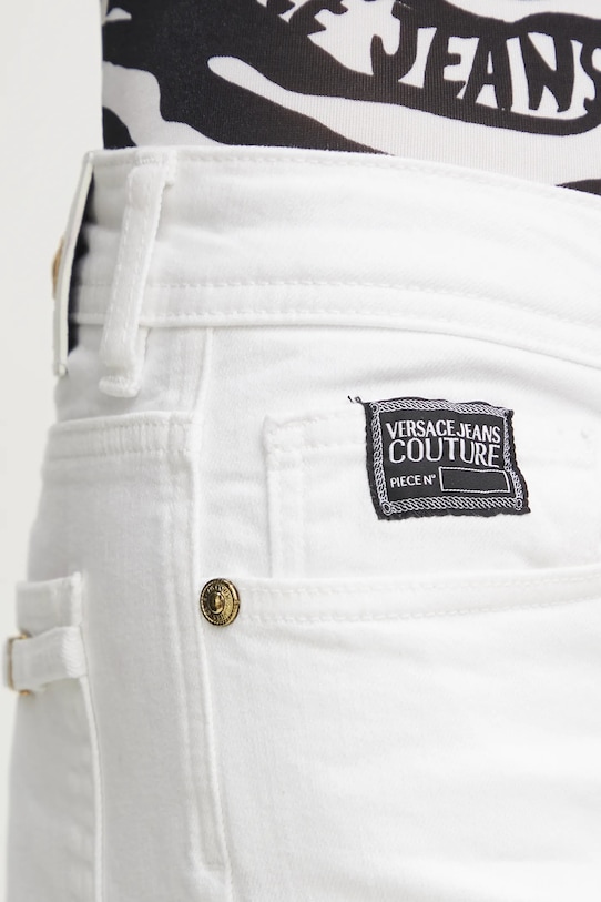 Эти джинсы bootcut из коллекции Versace Jeans Couture имеют стандартную талию и выполнены из гладкого денима. - Модель со стандартной талией, застежкой на пуговицы и молнию. - Три накладных кармана спереди. - Два накладных кармана на ягодицах. - Ширина талии: 39 см. - Ширина бедер: 49 см. - Высота талии: 25 см. - Ширина штанины внизу: 38 см. - Ширина штанины: 30 см. - Длина внешней части штанины: 113 см. - Размеры указаны для размера: 27.