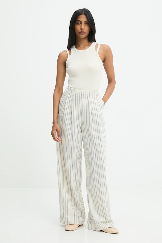 Брюки из коллекции Answear.LAB из тонкой, неэластичной ткани. Эта модель выполнена из исключительно комфортного, дышащего материала. - Застежка на потайную молнию. - Повышенное состояние. - Прямая нога полной длины. - Декоративные закладки. - Ширина талии: 34 см. - Ширина бедер: 55 см. - Высота талии: 32 см. - Ширина штанины внизу: 29 см. - Ширина штанины: 32 см. - Длина по внутреннему шву: 78 см. - Размеры указаны для размера: S.