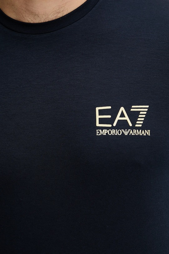 Эта футболка из коллекции EA7 Emporio Armani выполнена из тонкой эластичной ткани. Модель выполнена из исключительно комфортного материала с высоким содержанием вискозы. - Обычная посадка. - Классический круглый вырез. - Плоские швы защищают кожу от натирания и раздражения и обеспечивают высокий уровень комфорта во время занятий спортом. - Модель с принтом на груди. - Длина: 75,5 см. - Ширина под мышками: 55 см. - Размеры указаны для размера: M.