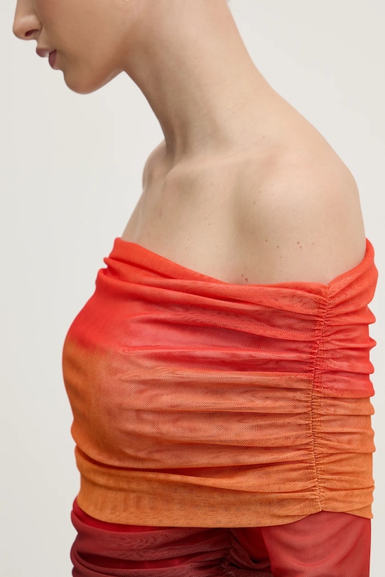 Эта блузка из коллекции Never Fully Dressed выполнена из тонкого, высокоэластичного трикотажа. Содержание полиэстера делает ткань менее мнущейся. - Приталенный крой, подчеркивающий силуэт. - Модель поставляется с верхом. - Испанский вырез. - Длинный рукав. - Модель с декоративными оборками. - Узорчатое трикотажное полотно. - Длина рукава (от горловины): 50 см. - Длина: 45 см. - Ширина под мышками: 35 см. - Размеры указаны для размера: S.