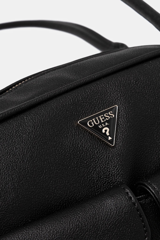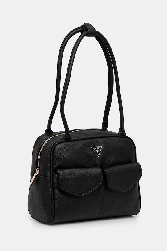 Сумка среднего размера из коллекции Guess. Модель на молнии, выполнена из экокожи. - Длинные ручки. - Ручки застегиваются на защелку. - Передние карманы с магнитной застежкой. - Застежка-молния. - Модель на подкладке. - Три внутренних кармана: один на молнии, два накладных. - Не подходит для формата А4. - Модель оснащена металлическими ножками, защищающими дно сумки. - Ширина у основания: 24 см. - Высота: 20 см. - Глубина: 10 см.