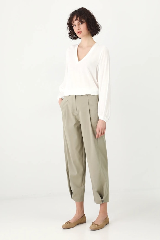 Брюки из коллекции «Медицина». Изготовлены из гладкой ткани. - Мешковатый стиль. - Обхват талии обычный. - Застежка на молнию и крючок. - Накладные карманы. - Кнопки внизу штанин позволяют легко надевать и снимать. - Декоративные закладки. - Гладкая ткань. - Ширина талии: 35,5 см. - Ширина бедер: 52 см. - Высота талии: 30 см. - Ширина штанины внизу: 17,7 см. - Длина по внутреннему шву: 69 см. - Размеры указаны для размера: S.