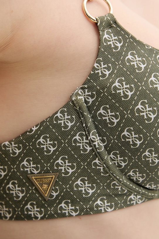 Плавательный бюстгальтер из коллекции Guess. Изготовлен из ткани с узором. - Данное изделие частично изготовлено из переработанного полиамида. - Встроенные подушечки слегка придают жесткость, дополнительно стабилизируют и приподнимают бюст. - Модель на косточках. - Модель с регулируемой шнуровкой. - Регулируемые, несъемные лямки. - Плоские швы защищают кожу от натирания и раздражения и обеспечивают высокий уровень комфорта во время занятий спортом.