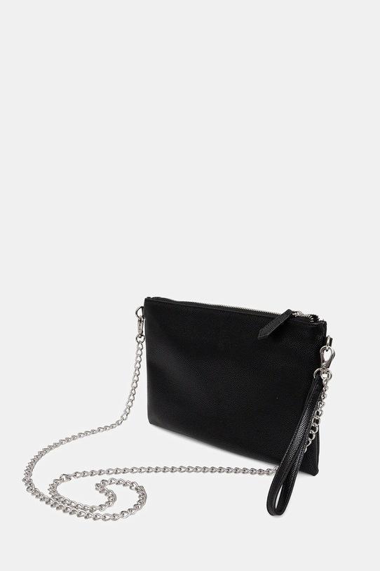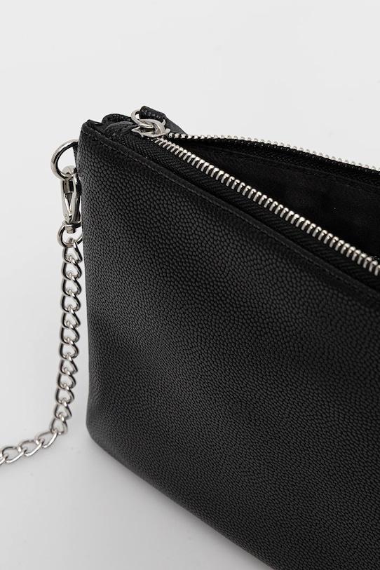 Небольшая сумочка из коллекции Valentino Bags. Застегивается на молнию, выполнена из экокожи. - Застежка-молния. - Три внутренних кармана: один на молнии, два накладных. - Модель на подкладке. - Не подходит для формата А4. - Съемный, нерегулируемый ремешок. - Съемная короткая ручка для удобной переноски в руке. - Входящий в комплект тканевый чехол защищает изделие от пыли. - Глубина: 1,5 см. - Высота: 18 см. - Ширина у основания: 26 см.