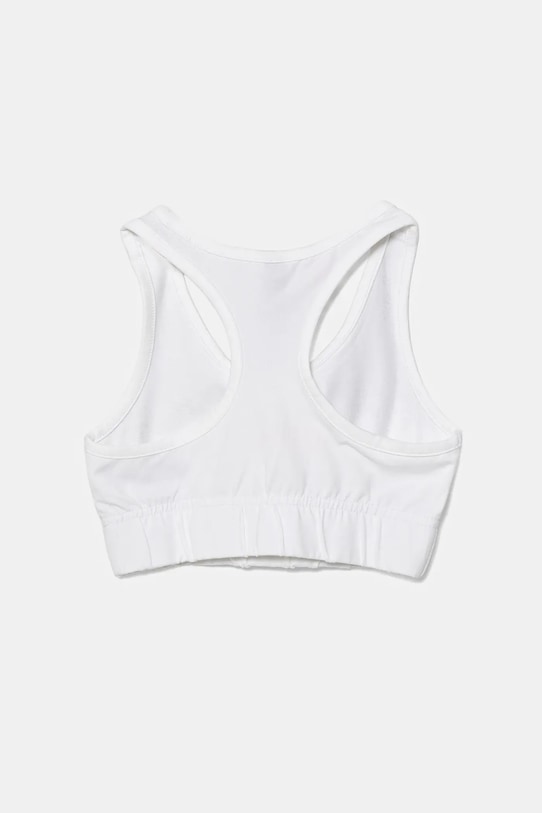 Этот детский спортивный бюстгальтер из коллекции adidas выполнен из нежного трикотажного полотна, которое минимизирует раздражение и обеспечивает высокий комфорт. - Мягкая чашка без косточек и других жестких элементов обеспечивает полный комфорт использования. - Нерегулируемые лямки не соскальзывают с плеч, обеспечивая комфорт во время занятий. - Эластичная, не сдавливающая лента под грудью усиливает поддержку груди и обеспечивает правильное прилегание к телу.