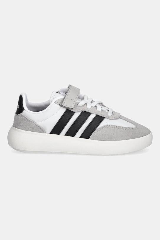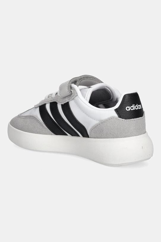 Эти детские кроссовки из коллекции adidas изготовлены из комбинации текстиля, замши и натуральной кожи. Текстильная стелька обеспечивает комфорт стопе и позволяет легко содержать кроссовки в чистоте. - Широкий носок предотвращает давление на пальцы ног. - Усиленный задник обеспечивает отличную поддержку лодыжки и пятки. - Эластичные шнурки и петельки на пятке позволяют легко надевать и снимать обувь. - Резиновая подошва прочная и устойчивая к повреждениям.