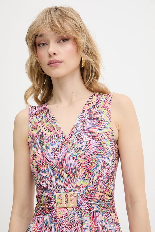 Это платье из коллекции Morgan выполнено из тонкого, высокоэластичного трикотажа. Содержание полиэстера делает ткань менее мнущейся. - Приталенный верх и расклешенный низ. - Острый вырез-конверт. - Нерегулируемые лямки не соскальзывают с плеч, обеспечивая комфорт во время занятий. - Модель без застежки. - Привлекающие внимание оборки. - Модель без подкладки. - Длина: 98 см. - Ширина под мышками: 42 см. - Размеры указаны для размера: 36.