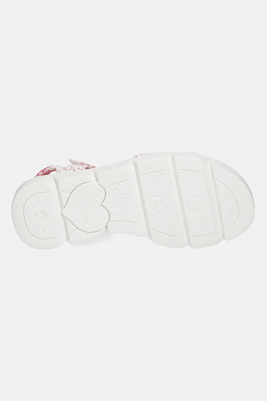 Детские сандалии из коллекции Agatha Ruiz de la Prada из искусственной кожи. Верх из непористого материала легко чистится влажной тканью. - Резиновая подошва прочная и устойчивая к повреждениям. - Модель на плоской подошве. - Профилированная, мягкая стелька гарантирует комфорт использования. - Ремешки с застежкой-липучкой для удобного застегивания позволяют индивидуально регулировать размер. - Длина вставки: 19,5 см. - Размеры указаны для размера: 30.