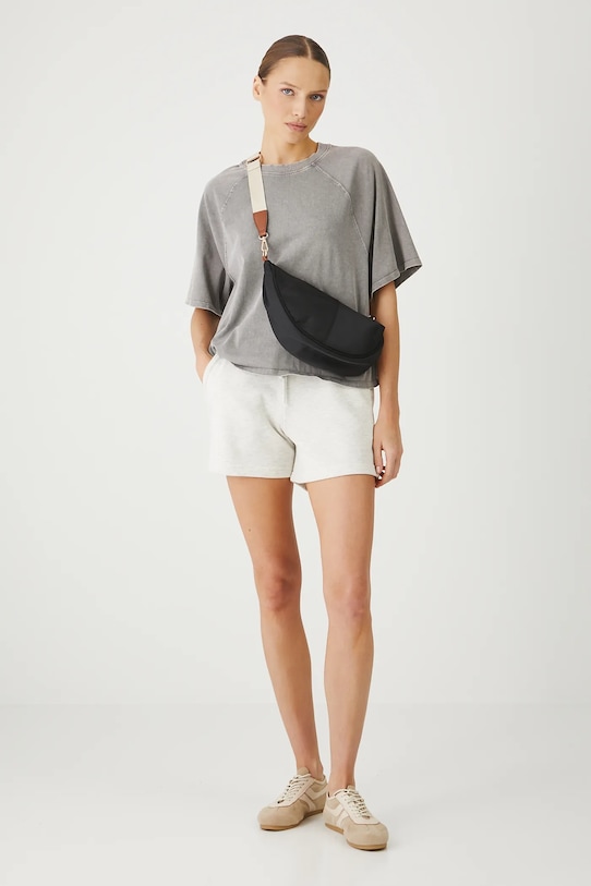 Шорты из коллекции «Медицина». Изготовлены из меланжевого трикотажа. - Свободный покрой. - Обхват талии обычный. - Эластичный пояс со шнурками. - Накладные карманы. - Модель выполнена из ткани френч-терри. - Меланжевый трикотаж. - Ширина талии (до растягивания): 34,5 см. - Ширина талии (после растяжения): 44 см. - Ширина бедер: 50,5 см. - Высота талии: 28 см. - Длина по внутреннему шву: 10 см. - Размеры указаны для размера: S.