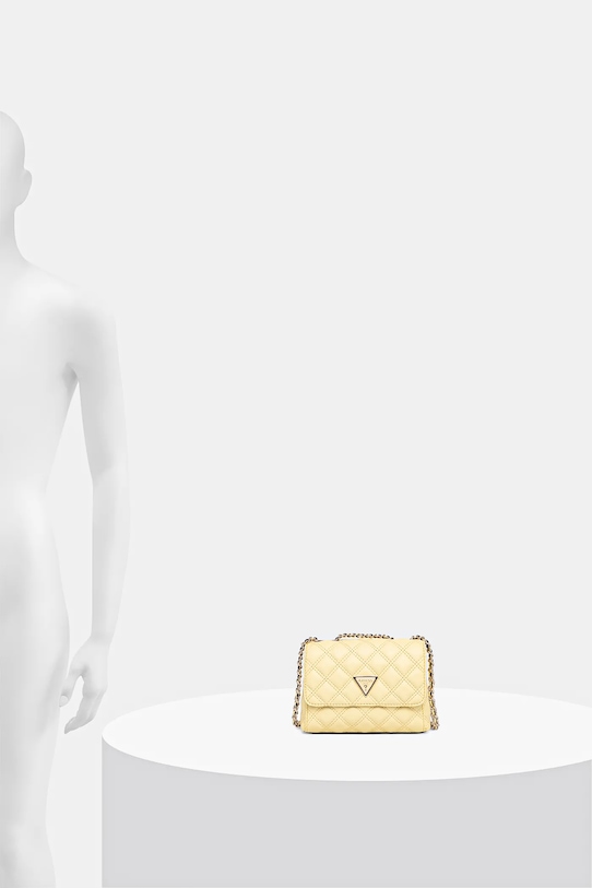 Небольшая сумочка из коллекции Guess. Модель на молнии, выполнена из экокожи. - Сумка для ношения через плечо. - Несъемный, регулируемый ремешок. - Клапан застегивается на магнит. - Он состоит из двух камер. - Внутренний карман на молнии. - Не подходит для формата А4. - Модель на подкладке. - Минимальная длина ремешка: 66 см. - Максимальная длина ремня: 108 см. - Глубина: 5 см. - Высота: 10 см. - Ширина у основания: 17 см.